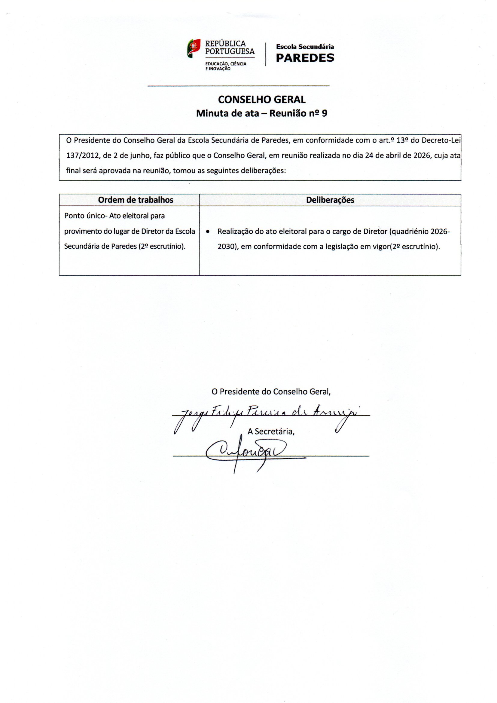 • Reunião n.º 8, de 20.4.2026 | Minuta da ata